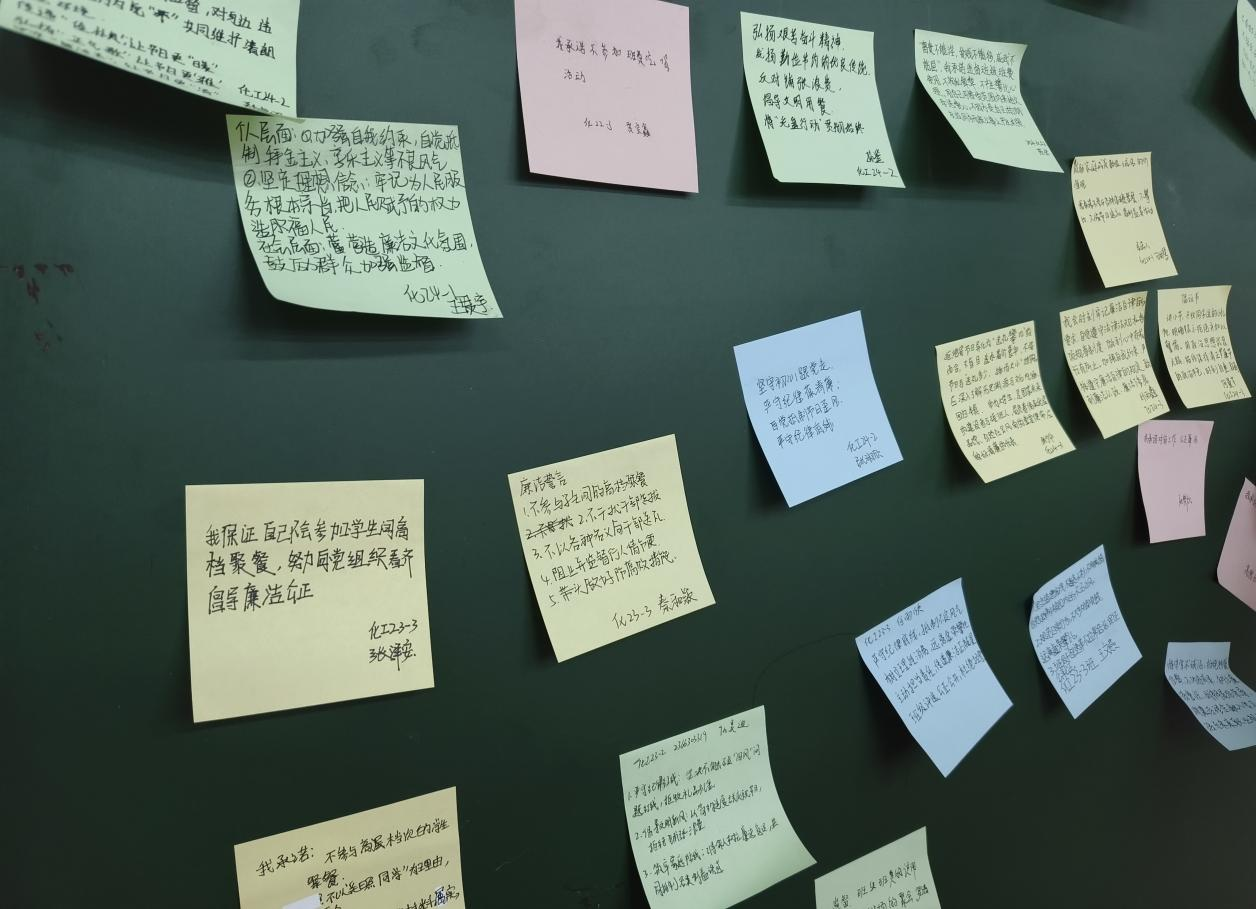 活动伊始,全体人员共同观看清廉主题微视频。随后,支部党员围绕《中央八项规定实施细则》,结合校园生活实际进行解读,帮助学生党员更好理解相关规定在日常学习、工作中的具体体现。在“廉洁情景问答”环节,同学们围绕“学生干部如何处理竞选请托”等贴近校园生活的现实题目展开抢答与讨论,在互动中增强了廉洁意识和应对实际问题的能力。活动最后,大家现场书写“节日廉洁承诺”便签,张贴于“倡议墙”并合影留念,形成公开监督、互相提醒的良好氛围。