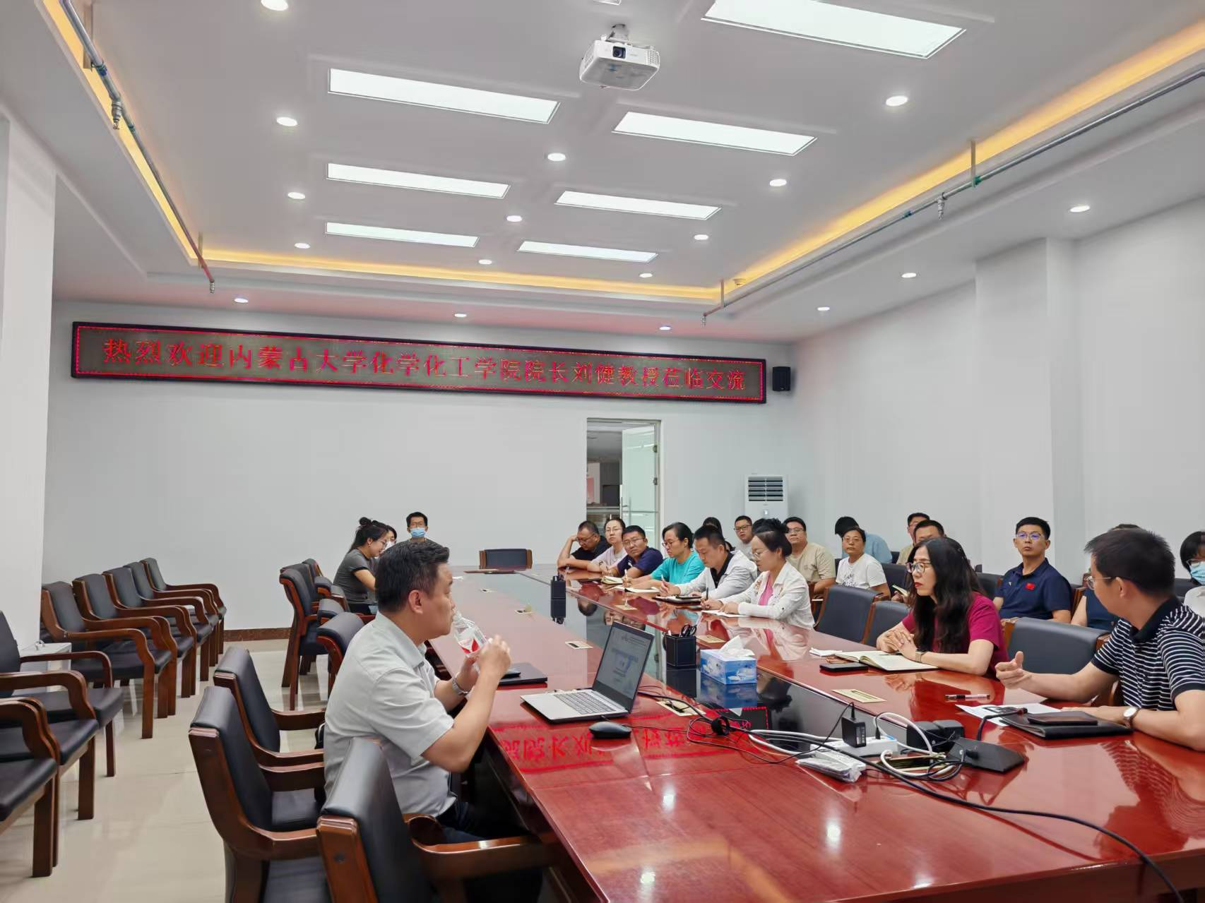 2025年8月21日,内蒙古大学化学化工学院院长、博士生导师刘健教授应邀莅临我院,开展学科建设交流暨国家自然科学基金申请经验分享活动。我院领导、各系主任及青年教师代表参加交流。双方围绕学科建设、科研合作等议题展开深入探讨,为学院学科发展注入新动能。