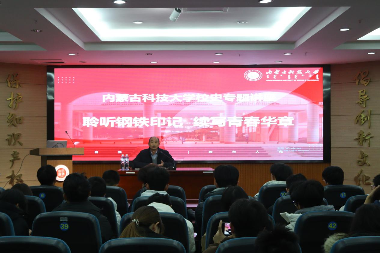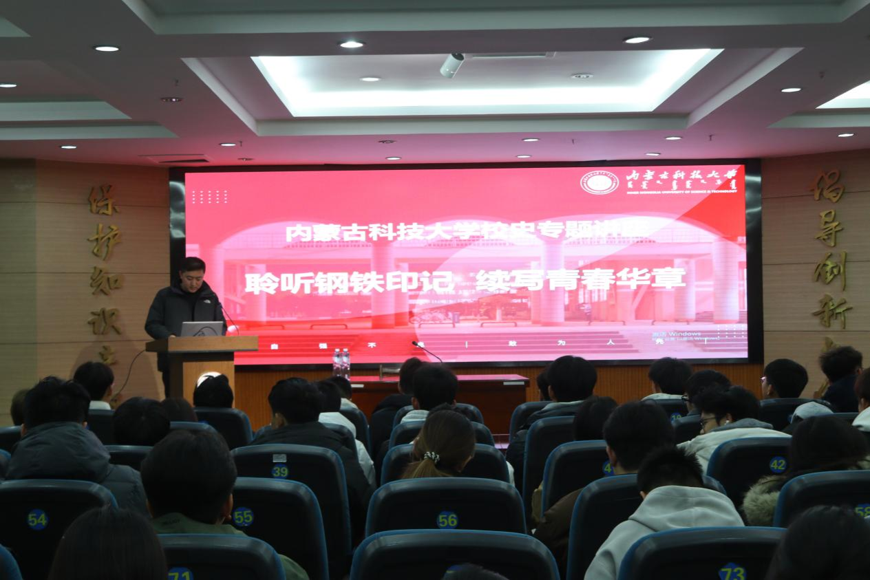 2025年11月20日下午,太阳成tyc7111cc在图书馆B206报告厅成功举办“聆听钢铁印记,续写青春华章”校史专题讲座。活动邀请学院原党总支书记甄金智担任主讲嘉宾,学院党委副书记副院长、辅导员及2025级学生代表共同参加。