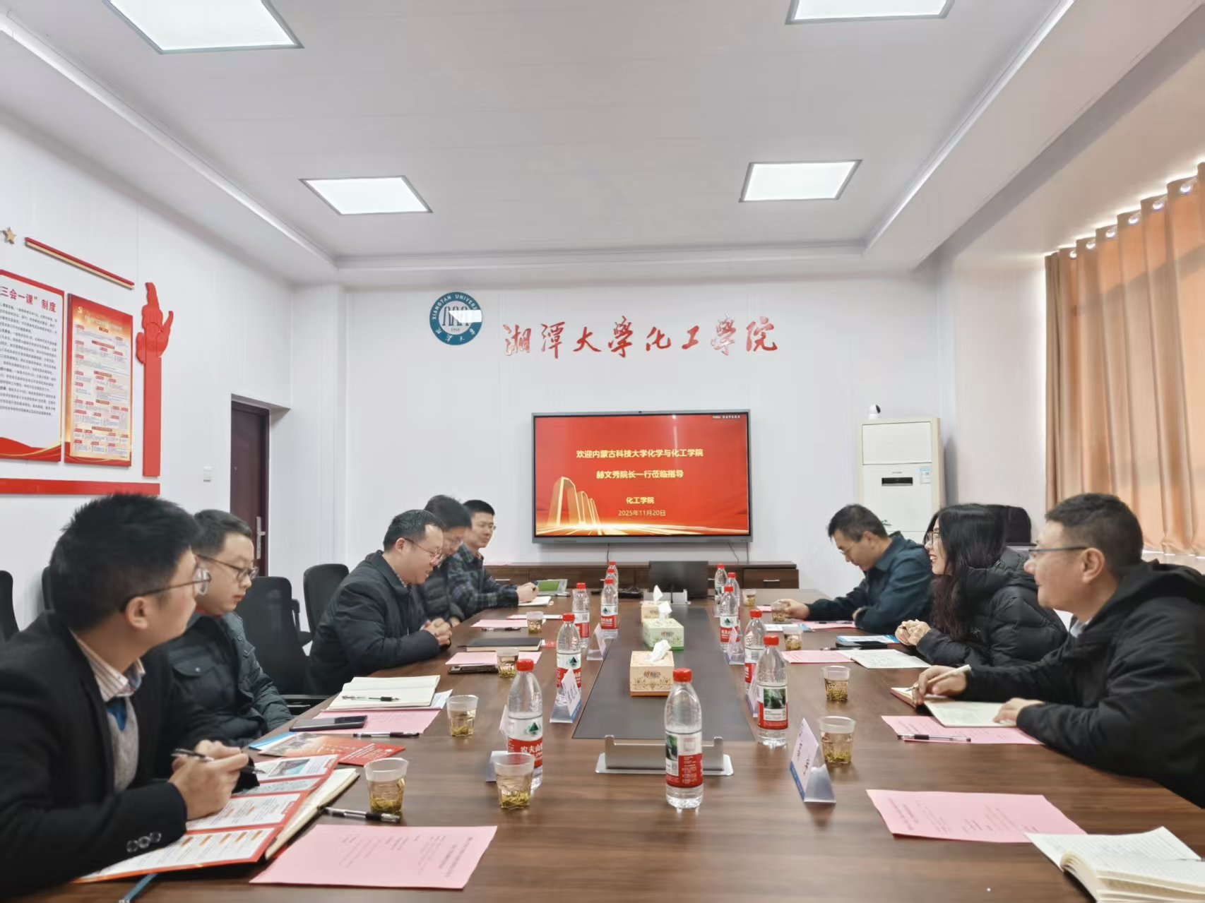 11月20日,代表团赴湘潭大学化工学院,与该院院长游奎一、副院长易争明、化工系主任张晓文、副主任蔡进军、李正科等座谈。双方围绕国家一流本科专业建设、化学工程与技术一级学科博士点建设、虚拟仿真实验教学中心发展等议题深入交流,分享了建设经验,并表达了加强合作的意愿。代表团还参观了煤制甲醇半实物仿真实训室,调研了虚拟仿真实践教学的应用成效。