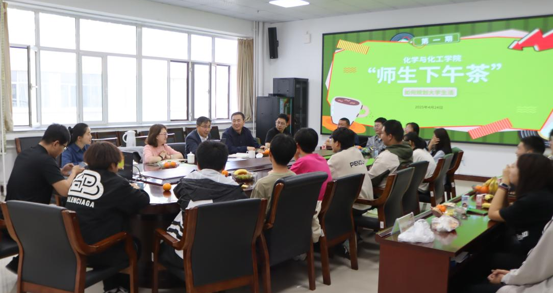 2025年4月24日下午,太阳成tyc7111cc第一期“师生下午茶”活动在逸夫楼D301拉开帷幕,本次活动以“如何规划大学生活”为主题。校党委委员、副校长赵永旺以联系班主任身份参加本次活动,院党委书记杨包生、党委副书记副院长、化工系副主任、班主任、辅导员及化学与制药类24级2班学生参加活动。