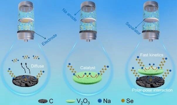 工作二:V2O3/碳界面的耦合吸附-催化作用加速多硒化物转化并抑制其在钠硒电池中的穿梭效应