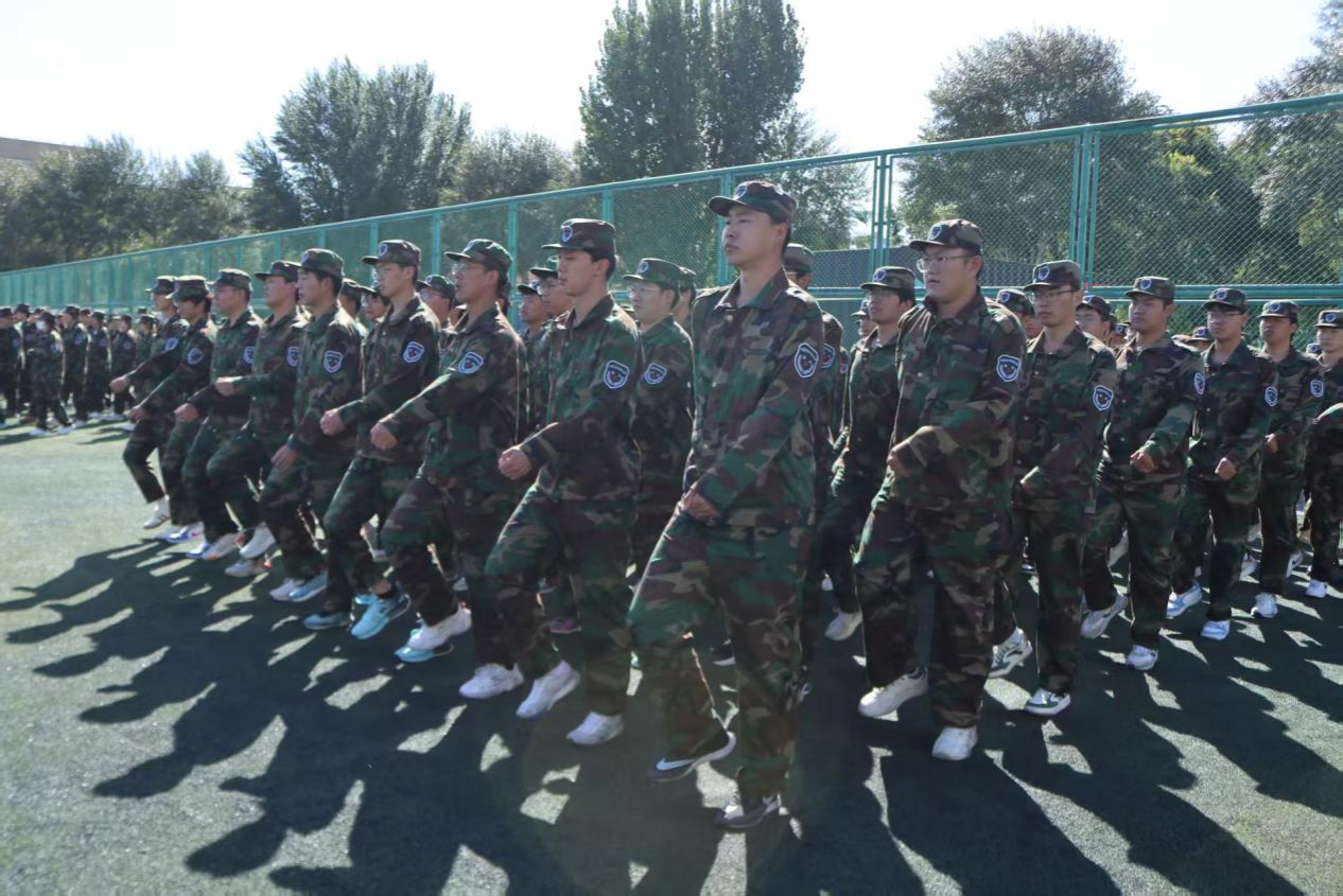 “一二一!一二三四!”口号伴步伐,奏响激昂曲。教官精授动作,校准摆臂、丈量间距,学员专注训练。