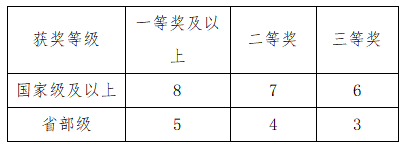 (2)学生参加学科竞赛获奖,获奖团队主要成员给予加分。具体如下:创业类竞赛(包括中国“互联网+”大学生创新创业大赛、“创青春”全国大学生创业大赛、全国大学生电子商务“创新、创意及创业”挑战赛),获奖团队排位前5名学生按照相应获奖等级同等赋分。其他学科竞赛获奖团队排位前3名学生按照相应获奖等级同等赋分。